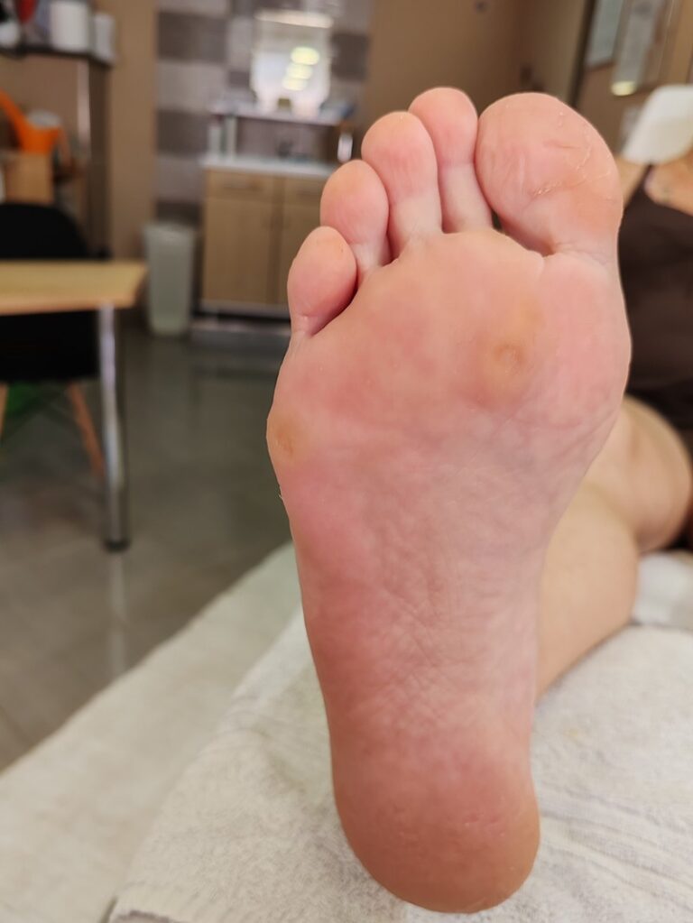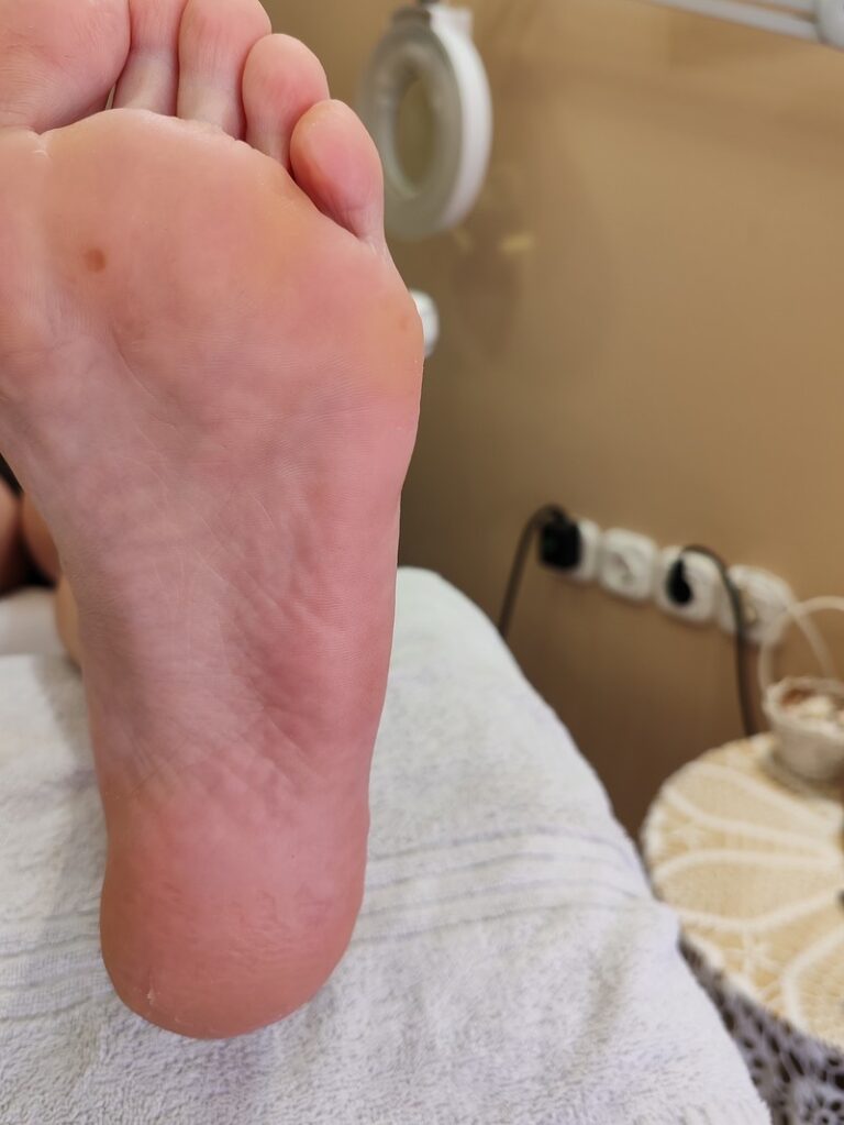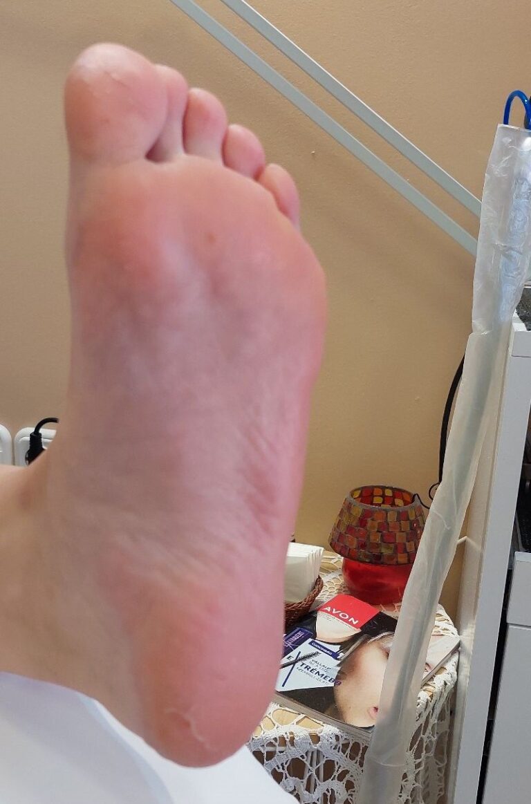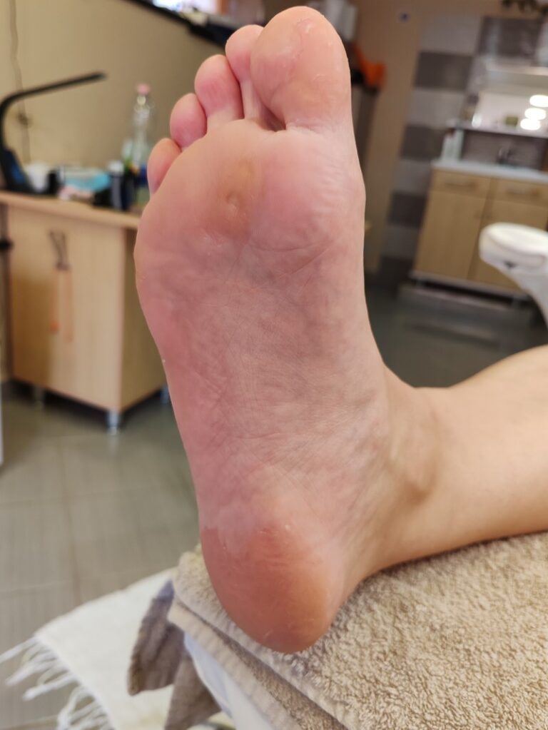 A kombinált talpkezelés során a bőrkeményedéseket szikével és gépi eszközzel távolítom el, majd bőrradírozással és ápoló krémezéssel zárom a kezelést, hogy a talpak puhák és ápoltak legyenek.