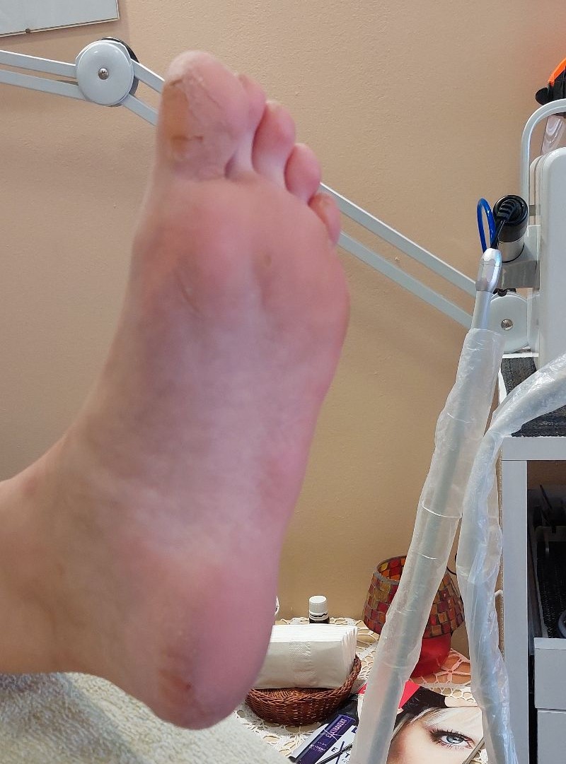 A kombinált talpkezelés során a bőrkeményedéseket szikével és gépi eszközzel távolítom el, majd bőrradírozással és ápoló krémezéssel zárom a kezelést, hogy a talpak puhák és ápoltak legyenek.